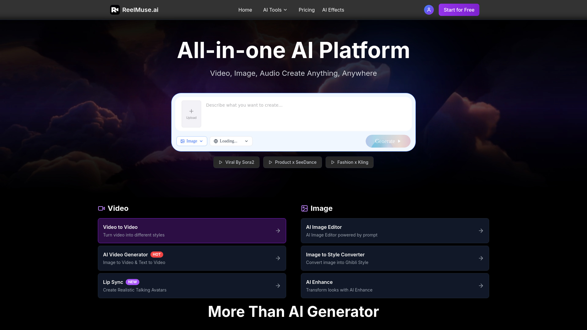 영화 같은 비디오와 놀라운 이미지를 위한 최고의 AI 플랫폼입니다.